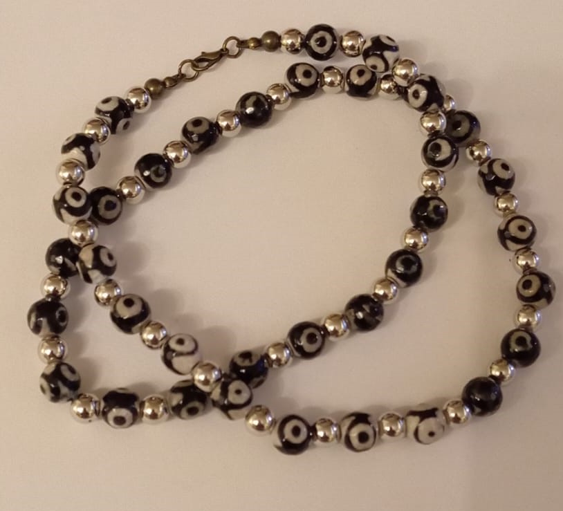 Colar com Contas de Vidro (Olho) e de Metal Dourado