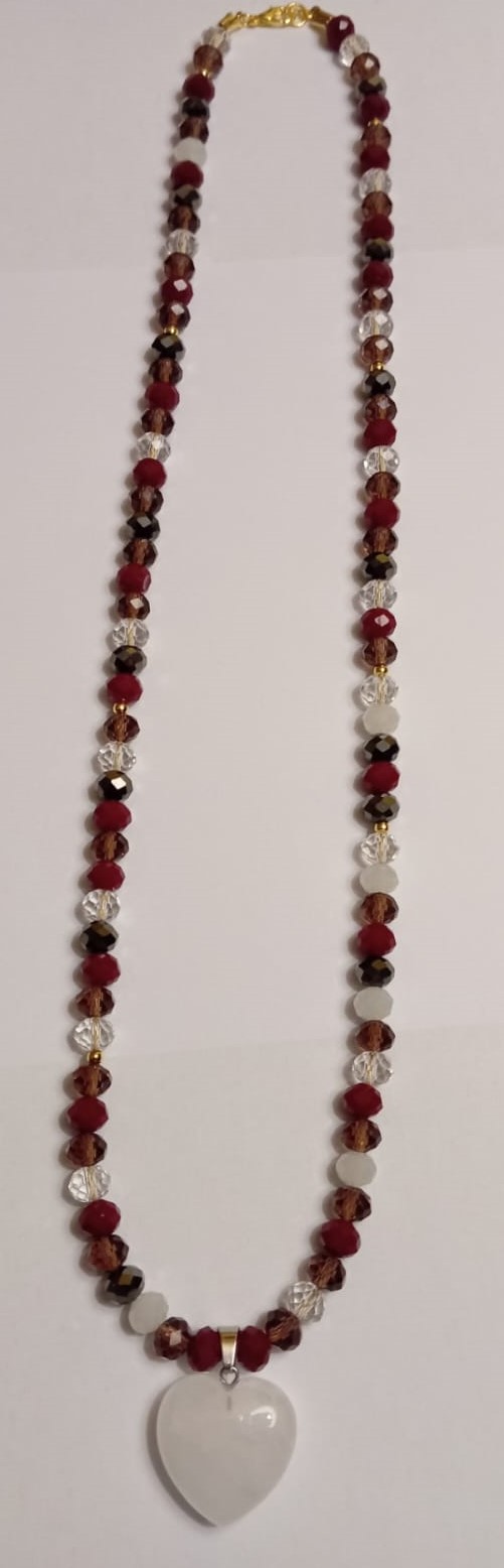 Colar com Contas Vermelhas e Brancas e Pendente Coração Branco